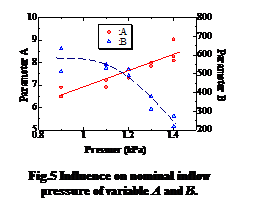 ここでのAおよびBは肝臓特有の力学特性を表すパラメータである.一般的に式(3.1)は生態軟組織の単軸引張特性を表す式として知られている.肝小葉内部の水分量の不均一を取り除いたときひずみ速度に対して,特性値A, BはFig.4のようになった.次に,マイクロポンプを用いて流入圧力を変化させたときの特性値の変化をFig.5に示す.特性値Aは圧力と共に上昇したが,特性値Bは低下する傾向を見せた.